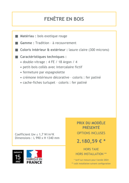 La fenêtre en bois, qu'elle soit ouvrante ou coulissante, apporte un charme naturel et une élégance intemporelle à votre maison. Le bois, matériau chaleureux et isolant, assure une excellente régulation thermique tout en conférant une touche authentique à votre intérieur. Profitez du confort d'une fenêtre fonctionnelle et robuste, tout en valorisant le style et l'authenticité de votre habitat.