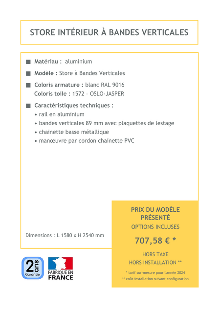 Le store intérieur à bandes verticales combine élégance et praticité, permettant un contrôle optimal de la lumière tout en ajoutant une touche contemporaine à votre intérieur. Apportez un style et un confort à votre espace avec ce design ajustable et épuré.